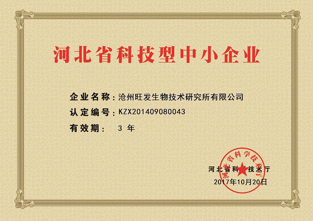滄州旺發生物技術研究所有限公司創立于1993年,是集研發、生產、銷售于一體的微生態制劑生產“高新技術企業”、“國家知識產權優勢企業”、“河北省農業產業化重點龍頭企業”、“河北省創新型中小企業”、“河北省專精特新中小企業”,目前,公司注冊資金1360萬元,生產占地80畝,擁有液、固態結合全自動發酵生產線及標準化全自動液態發酵、噴霧干燥生產線。
